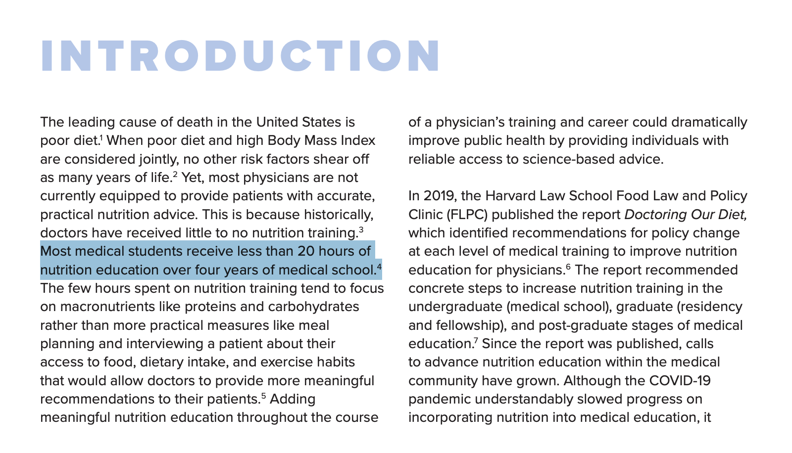 Dans le système corrompu d’aujourd’hui, « la plupart des étudiants en médecine reçoivent moins de 20 heures d’enseignement sur la nutrition au cours des quatre années d’études médicales« .