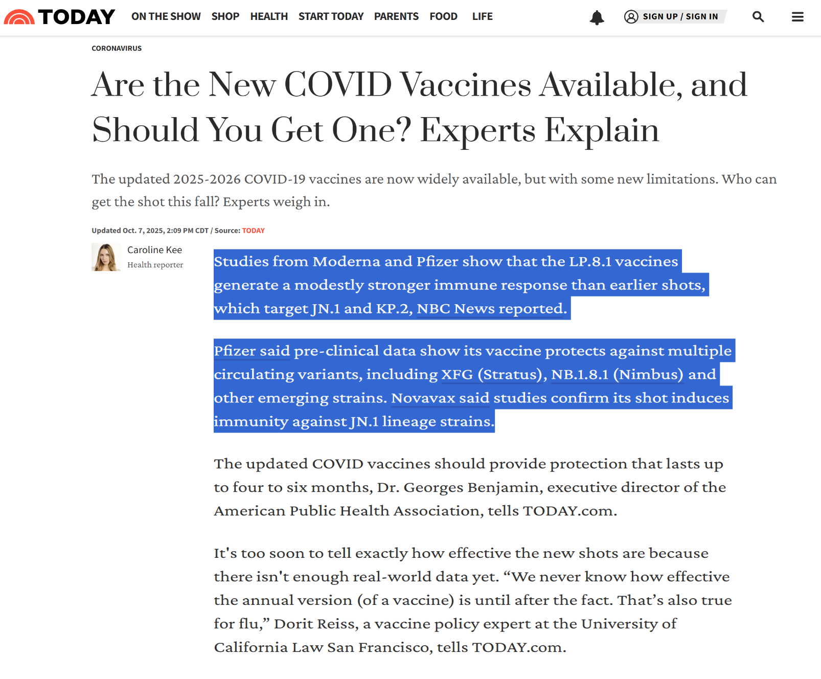Pfizer a déclaré que les données précliniques montrent que son vaccin protège contre de multiples variantes en circulation, notamment XFG (Stratus), NB.1.8.1 (Nimbus ) et d’autres souches émergentes. Novavax a déclaré que des études confirment que son vaccin induit une immunité contre les souches de la lignée JN.1.